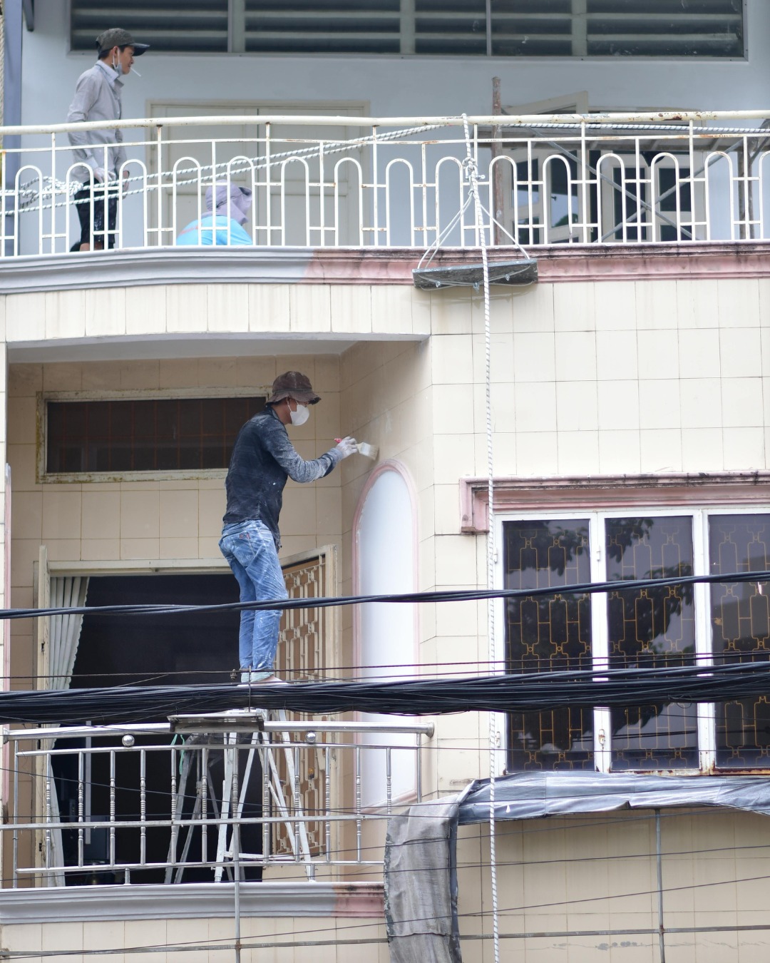 تطبيق طبقة أساس وطبقتين من الدهان النهائي (سيتينيه أو مطفي).